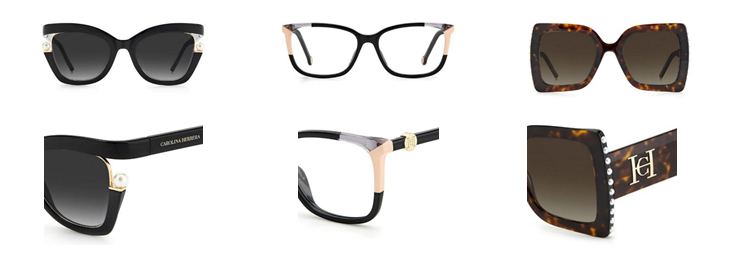 При создании очков Carolina Herrera дизайнеры Safilo вдохновляются новыми коллекциями модного дома, что находит своё отражение как в фирменной палитре цветов, так в выборе узоров и декоративной отделки.